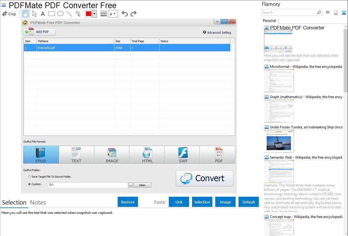 Here is how PDFMate PDF Converter Free snapshot can look like. Get Flamory and try this on your computer.