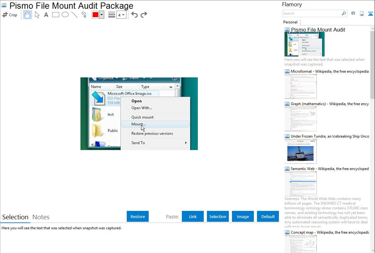 Flamory helps you capture and store screenshots from Pismo File Mount Audit Package by pressing a single hotkey. It will be saved to a history, so you can continue doing your tasks without interruptions. Later, you can edit the screenshot: crop, resize, add labels and highlights. After that, you can paste the screenshot into any other document or e-mail message.