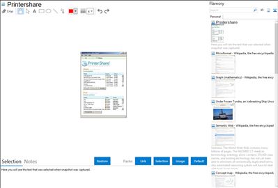 Flamory helps you capture and store screenshots from Printershare by pressing a single hotkey. It will be saved to a history, so you can continue doing your tasks without interruptions. Later, you can edit the screenshot: crop, resize, add labels and highlights. After that, you can paste the screenshot into any other document or e-mail message.