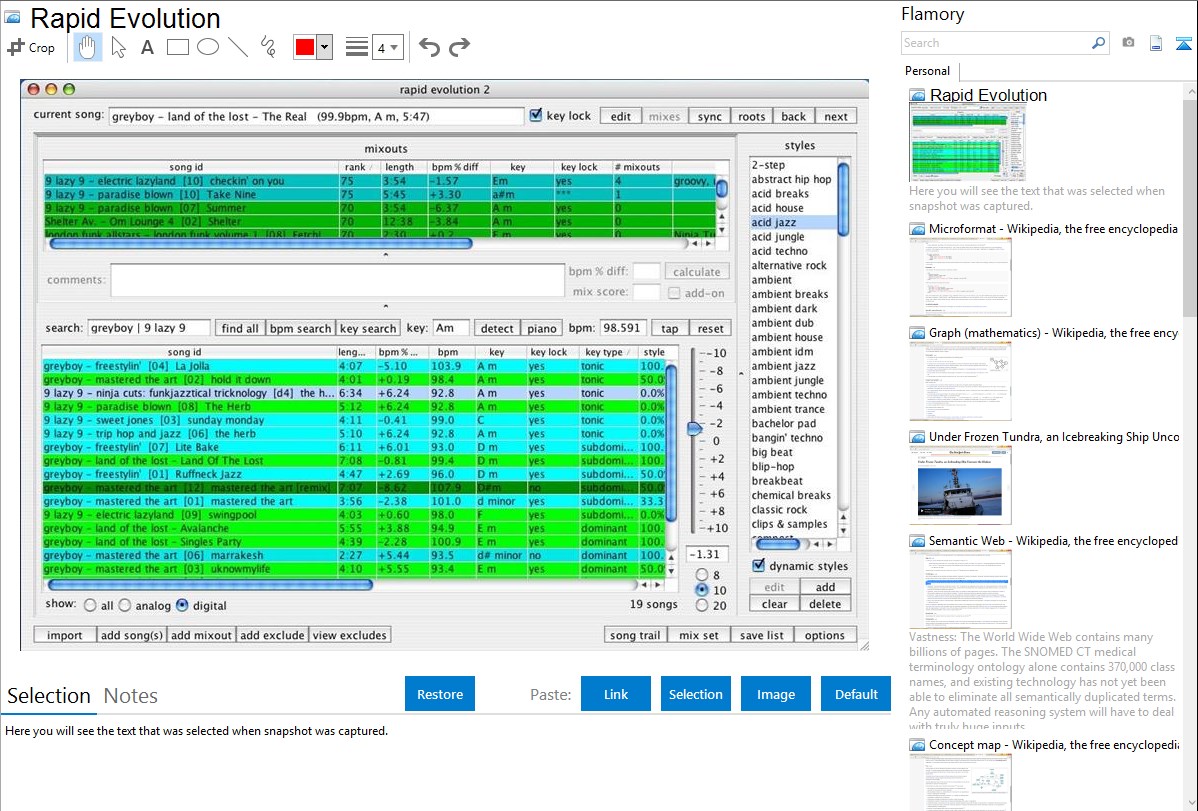 Flamory helps you capture and store screenshots from Rapid Evolution by pressing a single hotkey. It will be saved to a history, so you can continue doing your tasks without interruptions. Later, you can edit the screenshot: crop, resize, add labels and highlights. After that, you can paste the screenshot into any other document or e-mail message.