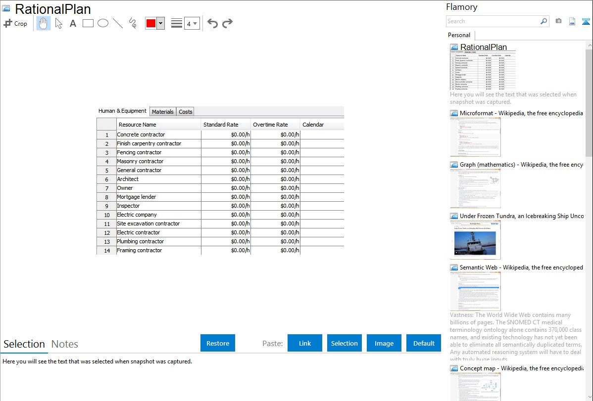 Flamory helps you capture and store screenshots from RationalPlan by pressing a single hotkey. It will be saved to a history, so you can continue doing your tasks without interruptions. Later, you can edit the screenshot: crop, resize, add labels and highlights. After that, you can paste the screenshot into any other document or e-mail message.