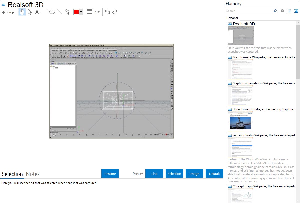 Here is how Realsoft 3D snapshot can look like. Get Flamory and try this on your computer.