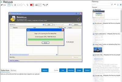Flamory helps you capture and store screenshots from Recuva by pressing a single hotkey. It will be saved to a history, so you can continue doing your tasks without interruptions. Later, you can edit the screenshot: crop, resize, add labels and highlights. After that, you can paste the screenshot into any other document or e-mail message.