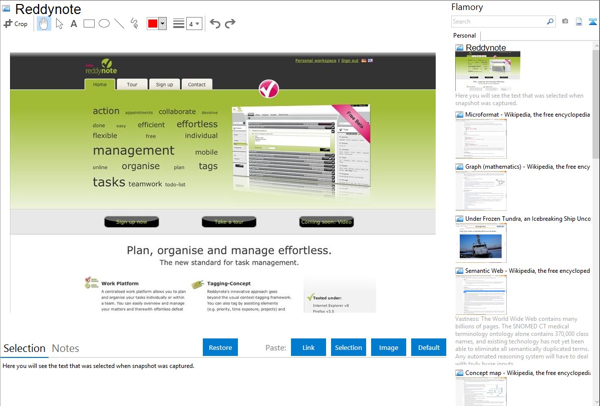 Flamory helps you capture and store screenshots from Reddynote by pressing a single hotkey. It will be saved to a history, so you can continue doing your tasks without interruptions. Later, you can edit the screenshot: crop, resize, add labels and highlights. After that, you can paste the screenshot into any other document or e-mail message.