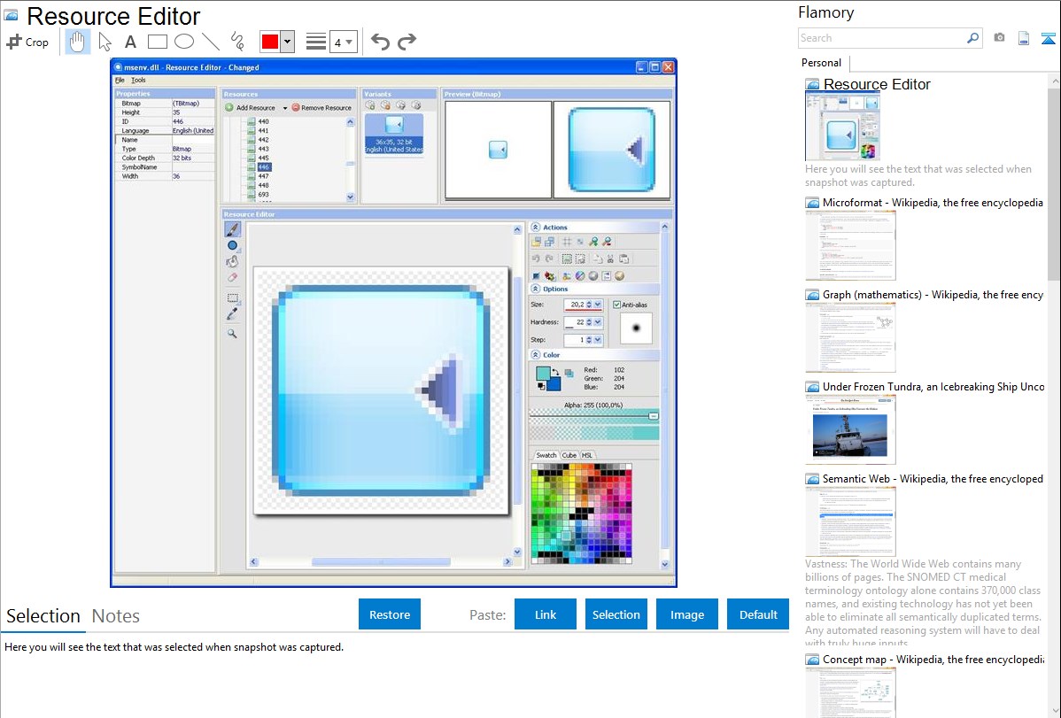 Flamory helps you capture and store screenshots from Resource Editor by pressing a single hotkey. It will be saved to a history, so you can continue doing your tasks without interruptions. Later, you can edit the screenshot: crop, resize, add labels and highlights. After that, you can paste the screenshot into any other document or e-mail message.