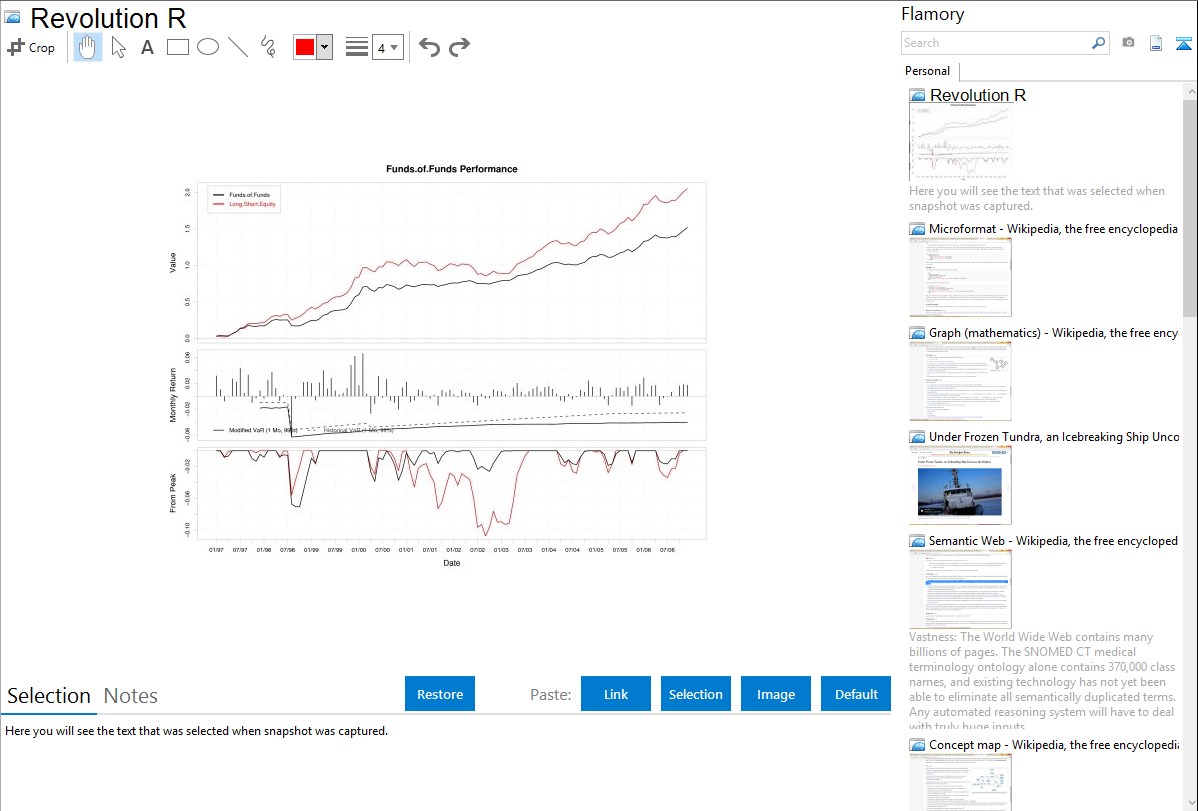Flamory helps you capture and store screenshots from Revolution R by pressing a single hotkey. It will be saved to a history, so you can continue doing your tasks without interruptions. Later, you can edit the screenshot: crop, resize, add labels and highlights. After that, you can paste the screenshot into any other document or e-mail message.