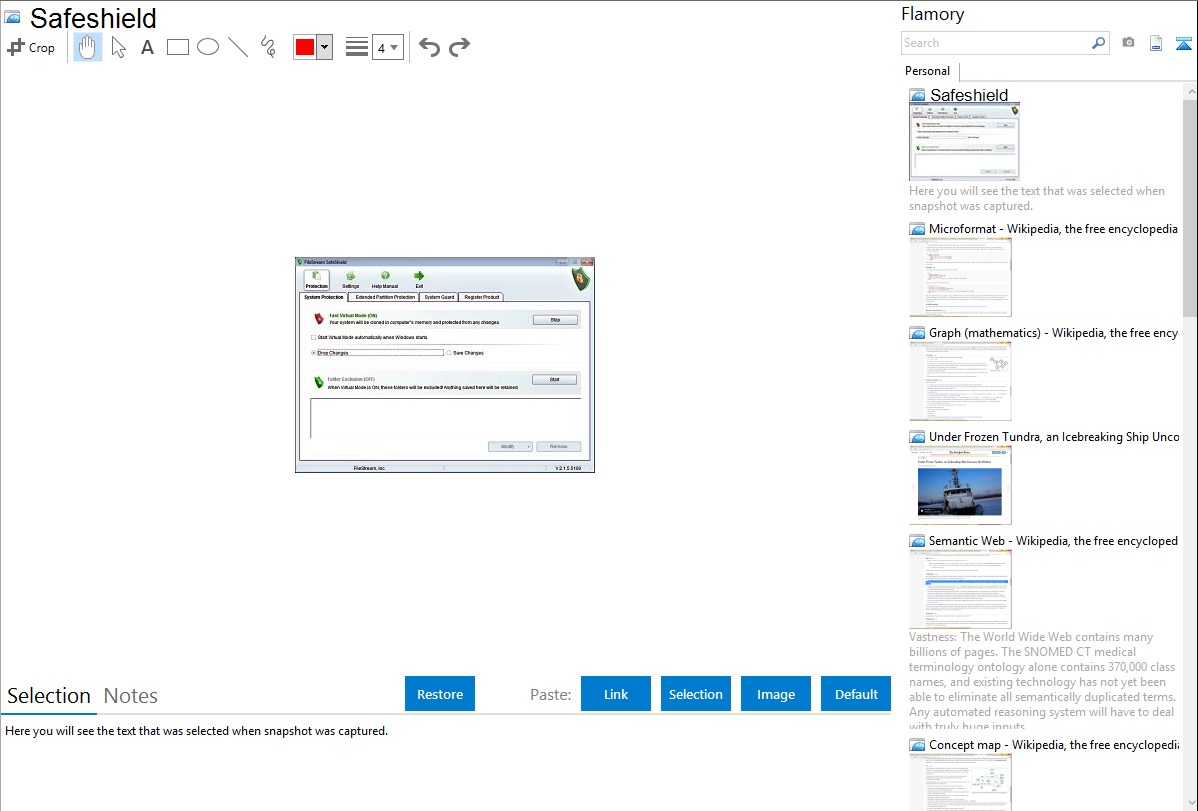 Flamory helps you capture and store screenshots from Safeshield by pressing a single hotkey. It will be saved to a history, so you can continue doing your tasks without interruptions. Later, you can edit the screenshot: crop, resize, add labels and highlights. After that, you can paste the screenshot into any other document or e-mail message.
