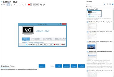 Flamory helps you capture and store screenshots from ScreenToGif by pressing a single hotkey. It will be saved to a history, so you can continue doing your tasks without interruptions. Later, you can edit the screenshot: crop, resize, add labels and highlights. After that, you can paste the screenshot into any other document or e-mail message.