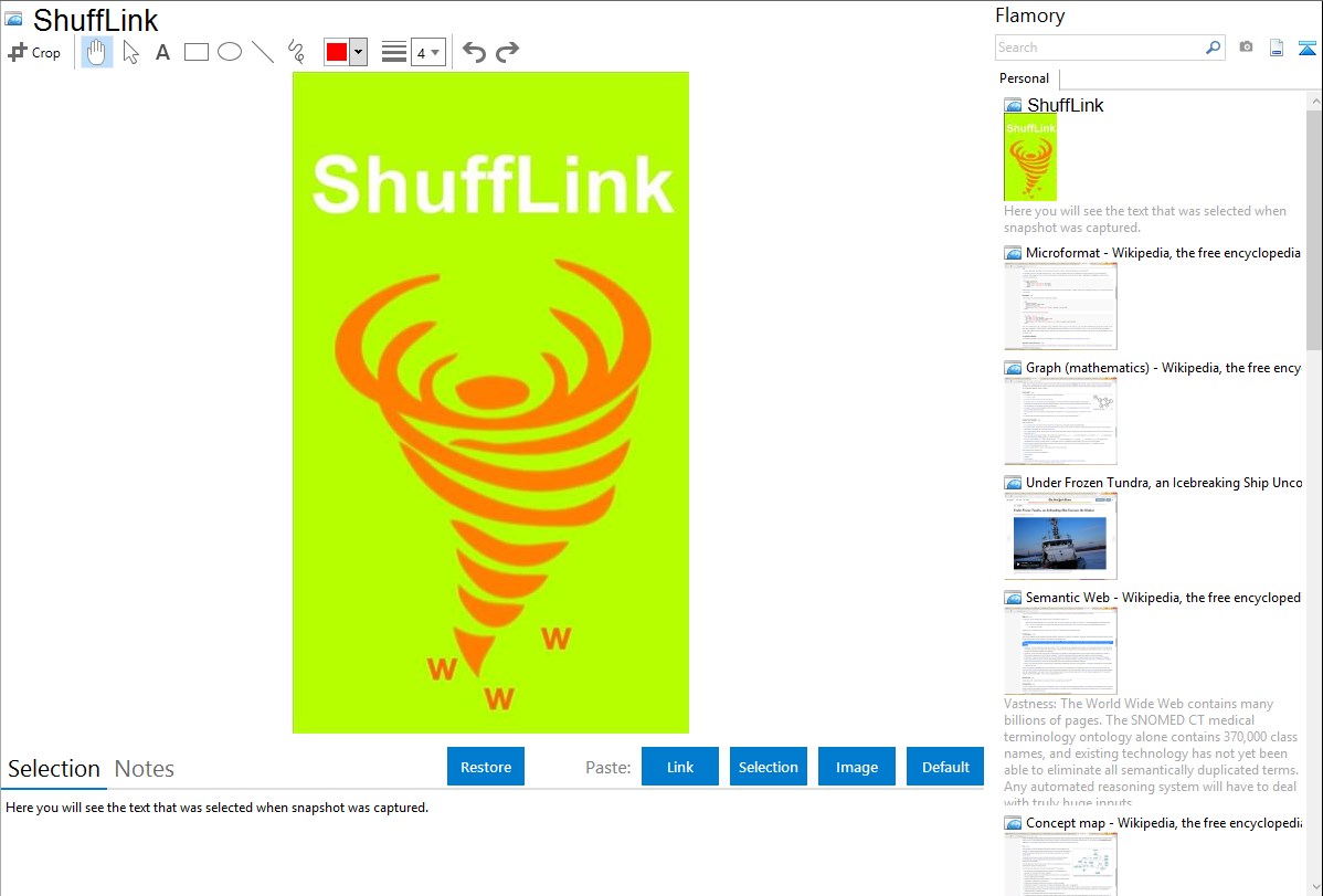 Flamory helps you capture and store screenshots from ShuffLink by pressing a single hotkey. It will be saved to a history, so you can continue doing your tasks without interruptions. Later, you can edit the screenshot: crop, resize, add labels and highlights. After that, you can paste the screenshot into any other document or e-mail message.