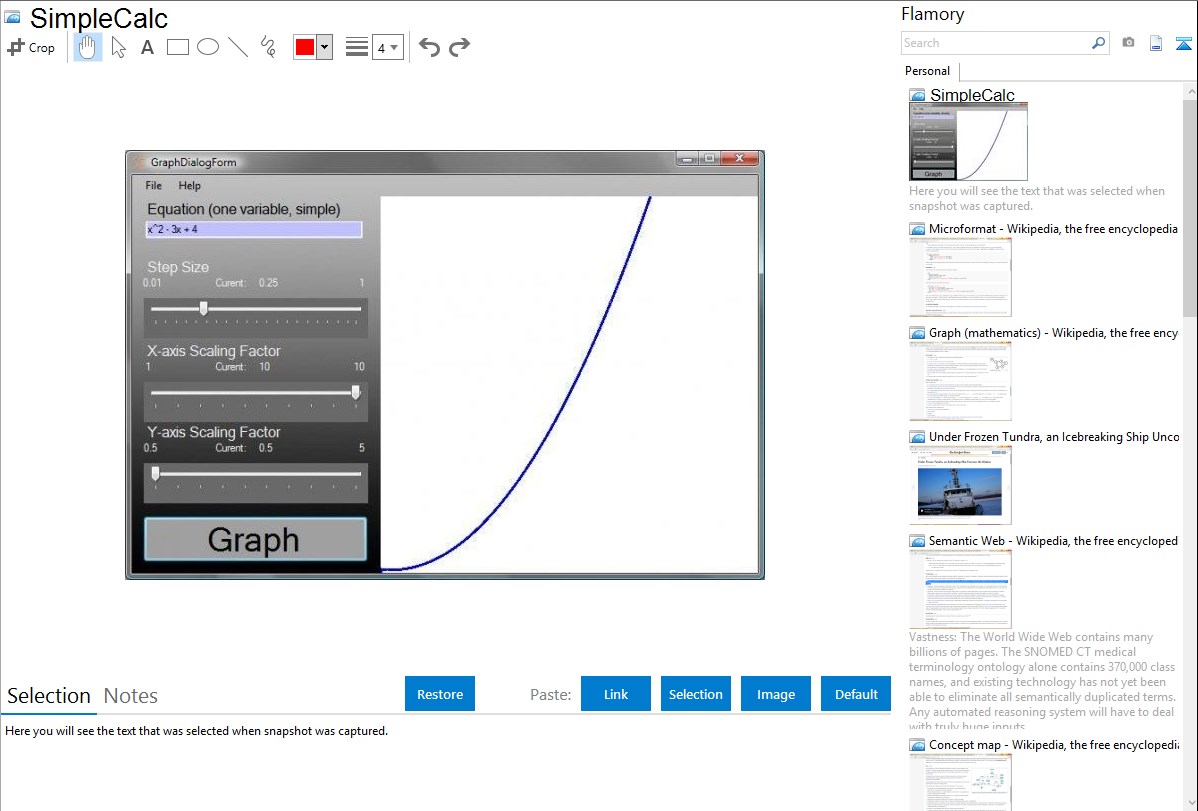 Flamory helps you capture and store screenshots from SimpleCalc by pressing a single hotkey. It will be saved to a history, so you can continue doing your tasks without interruptions. Later, you can edit the screenshot: crop, resize, add labels and highlights. After that, you can paste the screenshot into any other document or e-mail message.