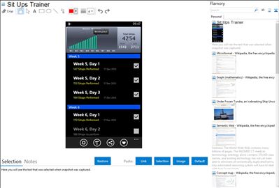 Flamory helps you capture and store screenshots from Sit Ups Trainer by pressing a single hotkey. It will be saved to a history, so you can continue doing your tasks without interruptions. Later, you can edit the screenshot: crop, resize, add labels and highlights. After that, you can paste the screenshot into any other document or e-mail message.