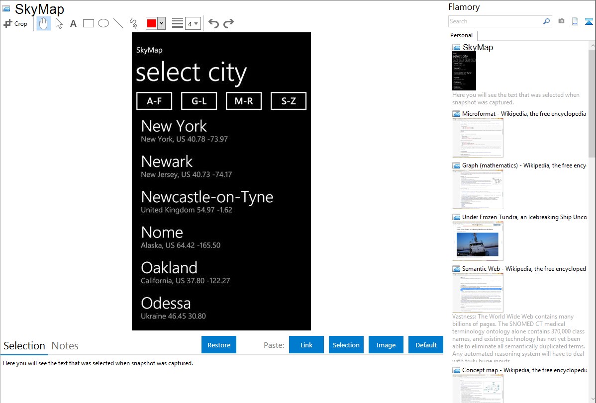 Flamory helps you capture and store screenshots from SkyMap by pressing a single hotkey. It will be saved to a history, so you can continue doing your tasks without interruptions. Later, you can edit the screenshot: crop, resize, add labels and highlights. After that, you can paste the screenshot into any other document or e-mail message.