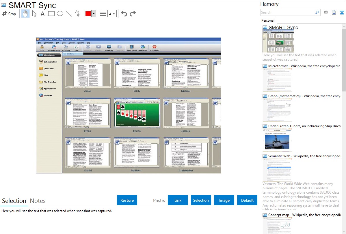 Flamory helps you capture and store screenshots from SMART Sync by pressing a single hotkey. It will be saved to a history, so you can continue doing your tasks without interruptions. Later, you can edit the screenshot: crop, resize, add labels and highlights. After that, you can paste the screenshot into any other document or e-mail message.