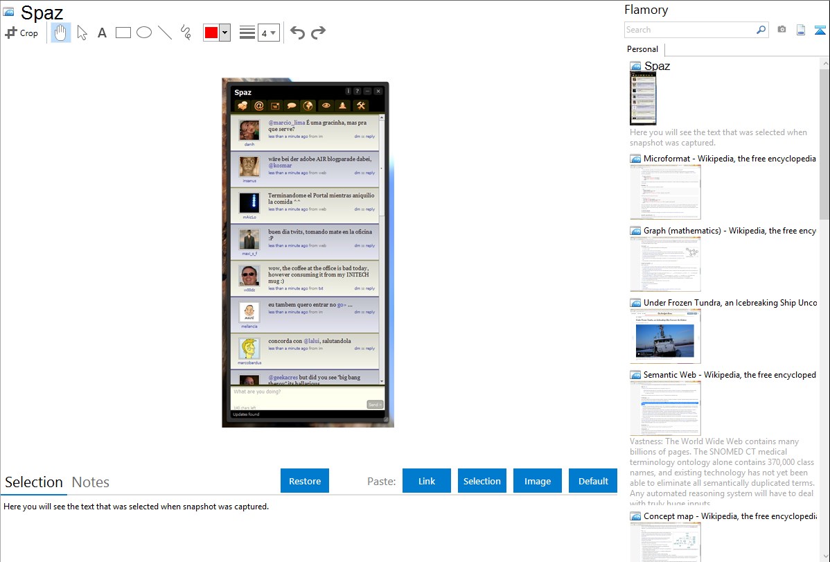 Flamory helps you capture and store screenshots from Spaz by pressing a single hotkey. It will be saved to a history, so you can continue doing your tasks without interruptions. Later, you can edit the screenshot: crop, resize, add labels and highlights. After that, you can paste the screenshot into any other document or e-mail message.