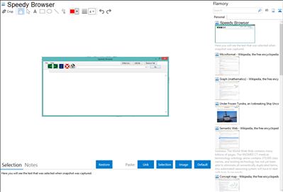 Flamory helps you capture and store screenshots from Speedy Browser by pressing a single hotkey. It will be saved to a history, so you can continue doing your tasks without interruptions. Later, you can edit the screenshot: crop, resize, add labels and highlights. After that, you can paste the screenshot into any other document or e-mail message.