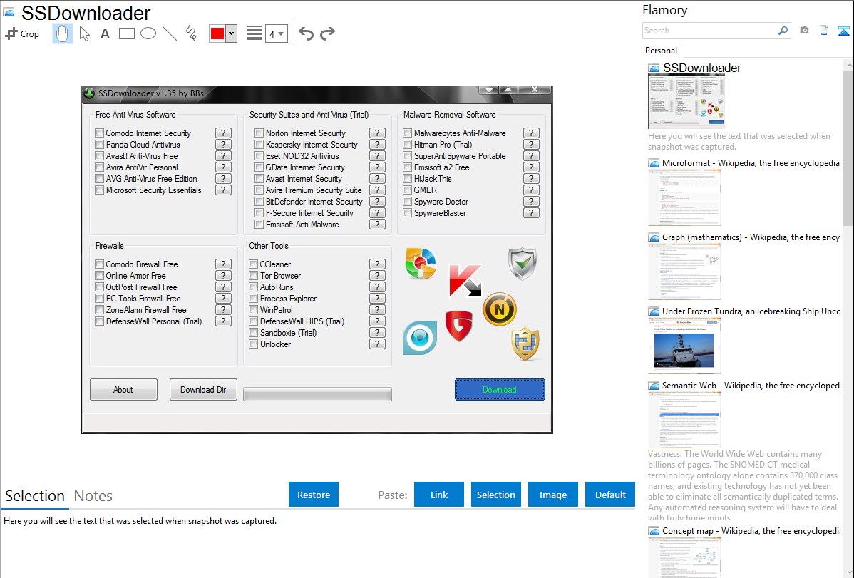 Flamory helps you capture and store screenshots from SSDownloader by pressing a single hotkey. It will be saved to a history, so you can continue doing your tasks without interruptions. Later, you can edit the screenshot: crop, resize, add labels and highlights. After that, you can paste the screenshot into any other document or e-mail message.