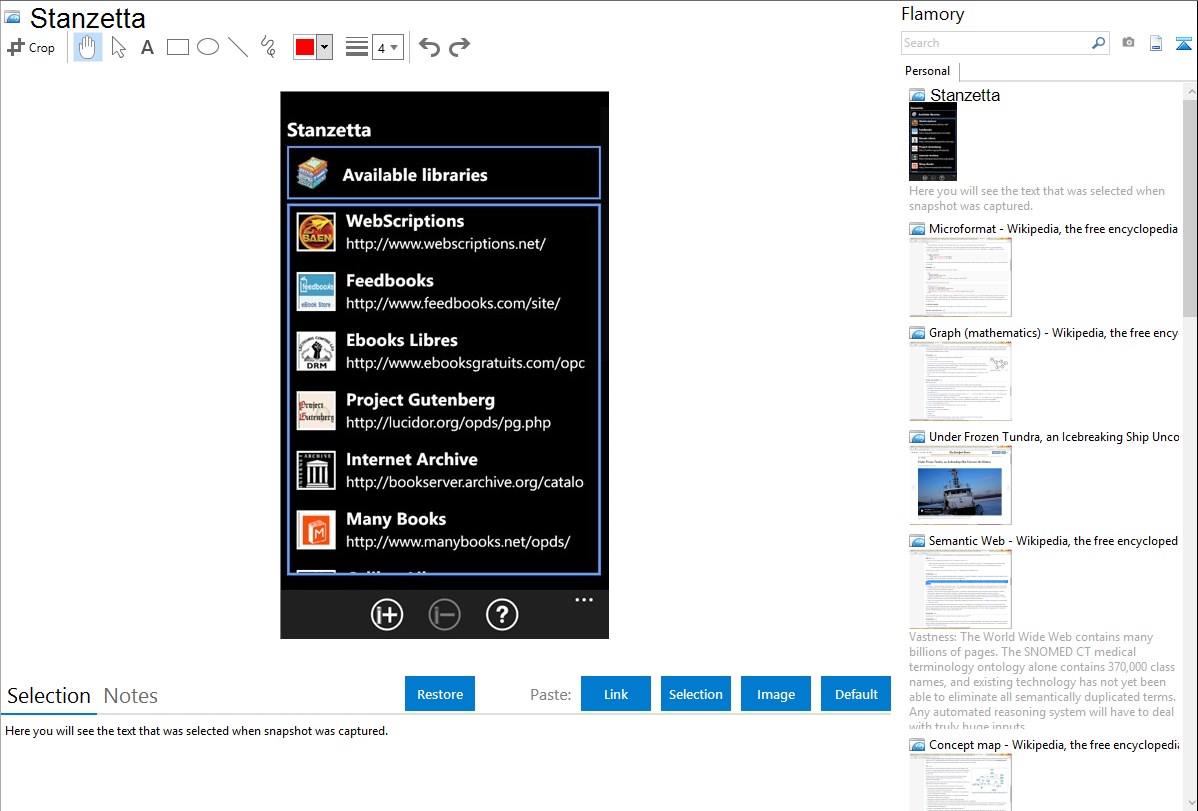 Flamory helps you capture and store screenshots from Stanzetta by pressing a single hotkey. It will be saved to a history, so you can continue doing your tasks without interruptions. Later, you can edit the screenshot: crop, resize, add labels and highlights. After that, you can paste the screenshot into any other document or e-mail message.