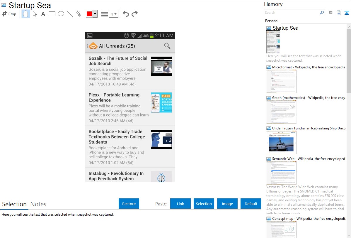 Flamory provides advanced bookmarking for Startup Sea. It captures screen, selection, text on the page and other context. You can find this bookmark later using search by page content or looking through thumbnail list.