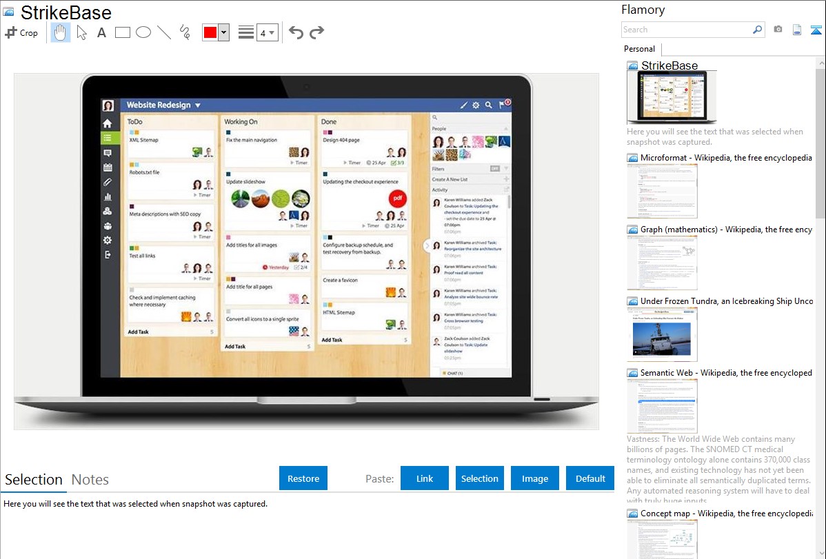Flamory helps you capture and store screenshots from StrikeBase by pressing a single hotkey. It will be saved to a history, so you can continue doing your tasks without interruptions. Later, you can edit the screenshot: crop, resize, add labels and highlights. After that, you can paste the screenshot into any other document or e-mail message.
