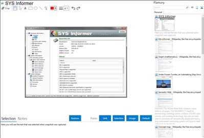 Flamory helps you capture and store screenshots from SYS Informer by pressing a single hotkey. It will be saved to a history, so you can continue doing your tasks without interruptions. Later, you can edit the screenshot: crop, resize, add labels and highlights. After that, you can paste the screenshot into any other document or e-mail message.