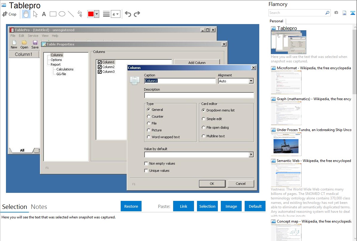 Flamory helps you capture and store screenshots from Tablepro by pressing a single hotkey. It will be saved to a history, so you can continue doing your tasks without interruptions. Later, you can edit the screenshot: crop, resize, add labels and highlights. After that, you can paste the screenshot into any other document or e-mail message.