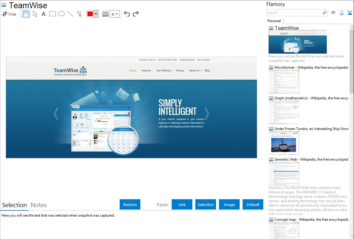 Flamory helps you capture and store screenshots from TeamWise by pressing a single hotkey. It will be saved to a history, so you can continue doing your tasks without interruptions. Later, you can edit the screenshot: crop, resize, add labels and highlights. After that, you can paste the screenshot into any other document or e-mail message.