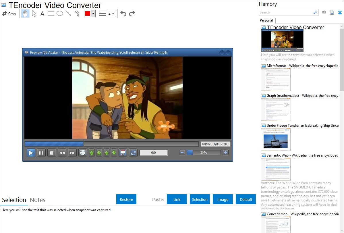 Flamory helps you capture and store screenshots from TEncoder Video Converter by pressing a single hotkey. It will be saved to a history, so you can continue doing your tasks without interruptions. Later, you can edit the screenshot: crop, resize, add labels and highlights. After that, you can paste the screenshot into any other document or e-mail message.