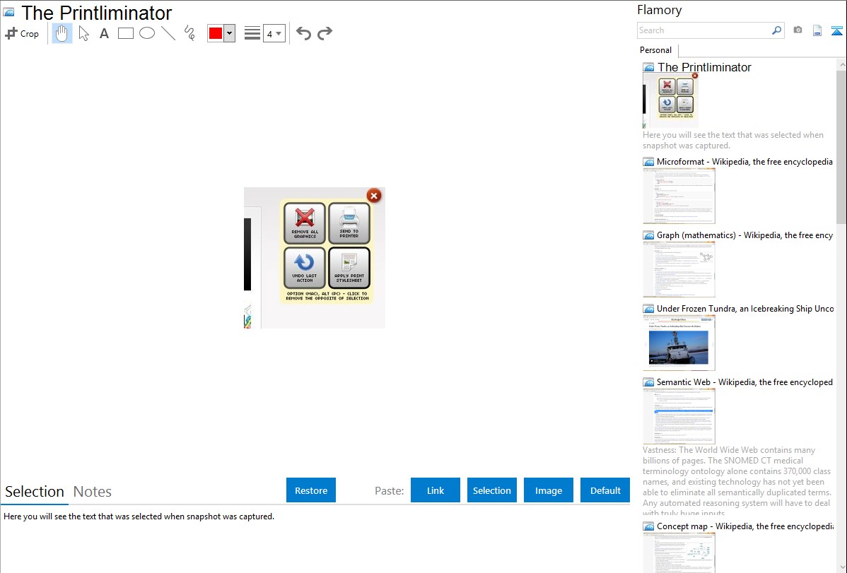 Flamory helps you capture and store screenshots from The Printliminator by pressing a single hotkey. It will be saved to a history, so you can continue doing your tasks without interruptions. Later, you can edit the screenshot: crop, resize, add labels and highlights. After that, you can paste the screenshot into any other document or e-mail message.
