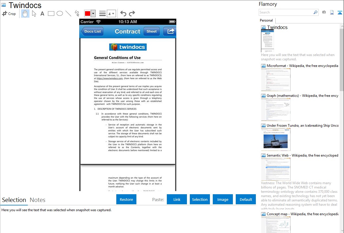 Flamory helps you capture and store screenshots from Twindocs by pressing a single hotkey. It will be saved to a history, so you can continue doing your tasks without interruptions. Later, you can edit the screenshot: crop, resize, add labels and highlights. After that, you can paste the screenshot into any other document or e-mail message.