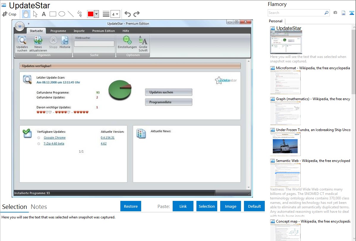 Flamory helps you capture and store screenshots from UpdateStar by pressing a single hotkey. It will be saved to a history, so you can continue doing your tasks without interruptions. Later, you can edit the screenshot: crop, resize, add labels and highlights. After that, you can paste the screenshot into any other document or e-mail message.