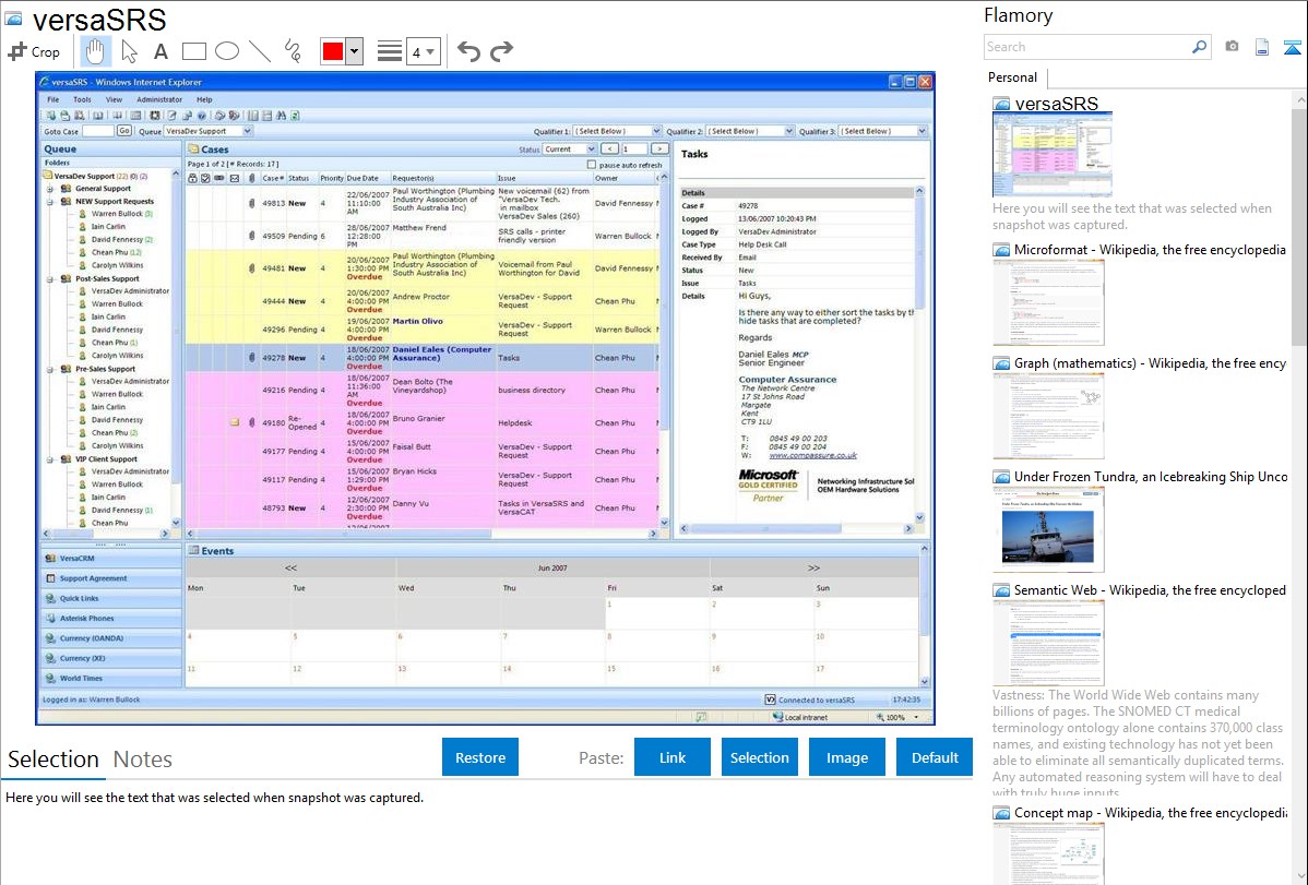 Flamory helps you capture and store screenshots from versaSRS by pressing a single hotkey. It will be saved to a history, so you can continue doing your tasks without interruptions. Later, you can edit the screenshot: crop, resize, add labels and highlights. After that, you can paste the screenshot into any other document or e-mail message.