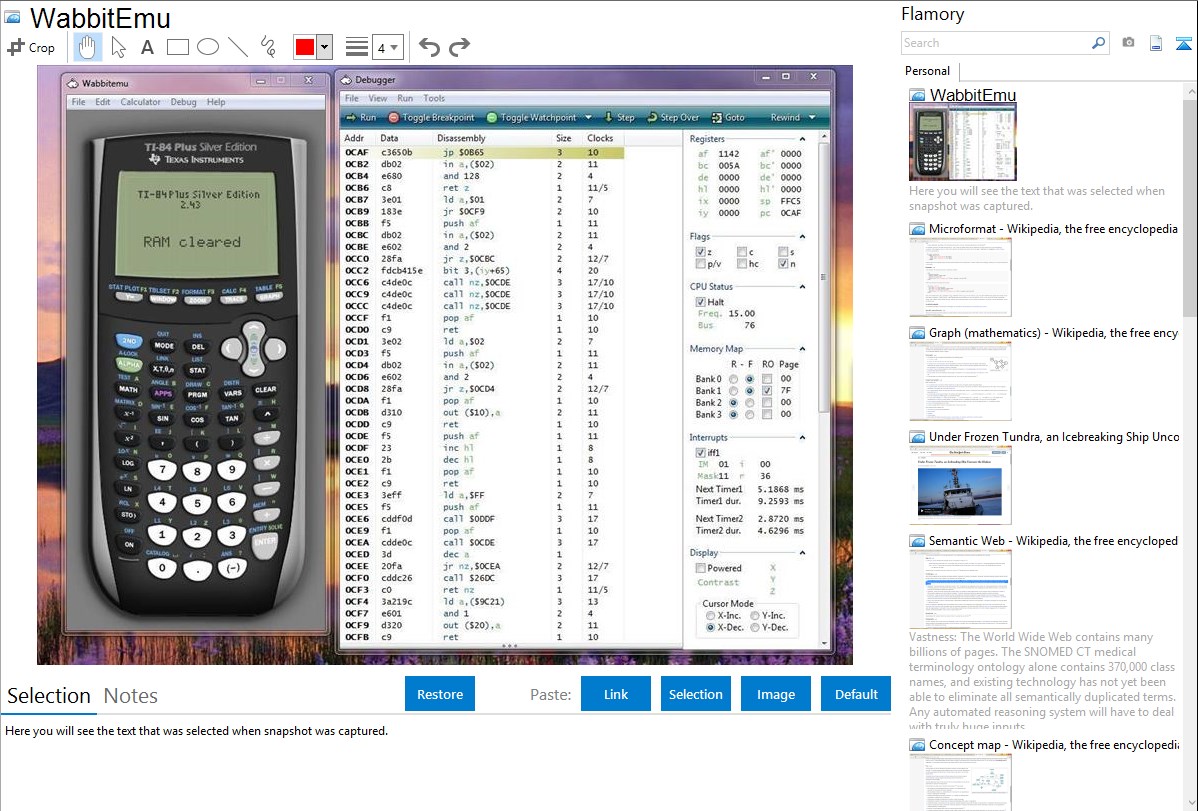 Here is how WabbitEmu snapshot can look like. Get Flamory and try this on your computer.
