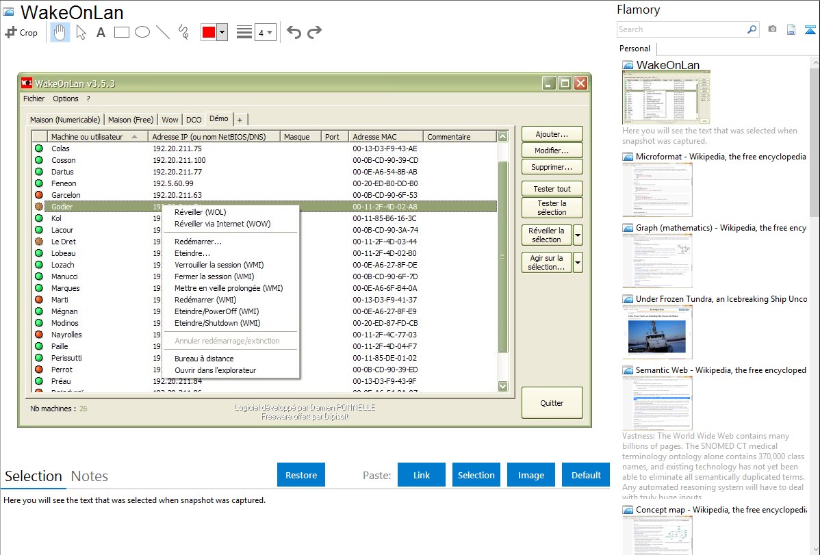 Flamory helps you capture and store screenshots from WakeOnLan by pressing a single hotkey. It will be saved to a history, so you can continue doing your tasks without interruptions. Later, you can edit the screenshot: crop, resize, add labels and highlights. After that, you can paste the screenshot into any other document or e-mail message.