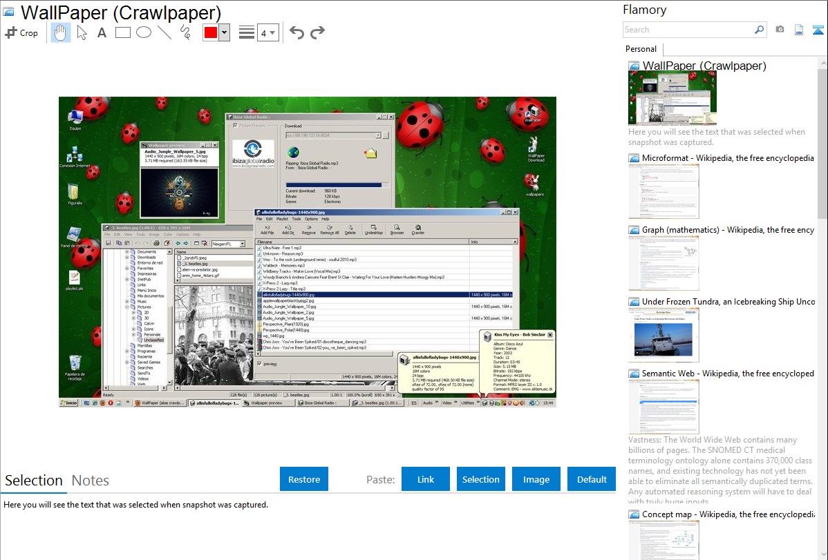 Flamory helps you capture and store screenshots from WallPaper (Crawlpaper) by pressing a single hotkey. It will be saved to a history, so you can continue doing your tasks without interruptions. Later, you can edit the screenshot: crop, resize, add labels and highlights. After that, you can paste the screenshot into any other document or e-mail message.