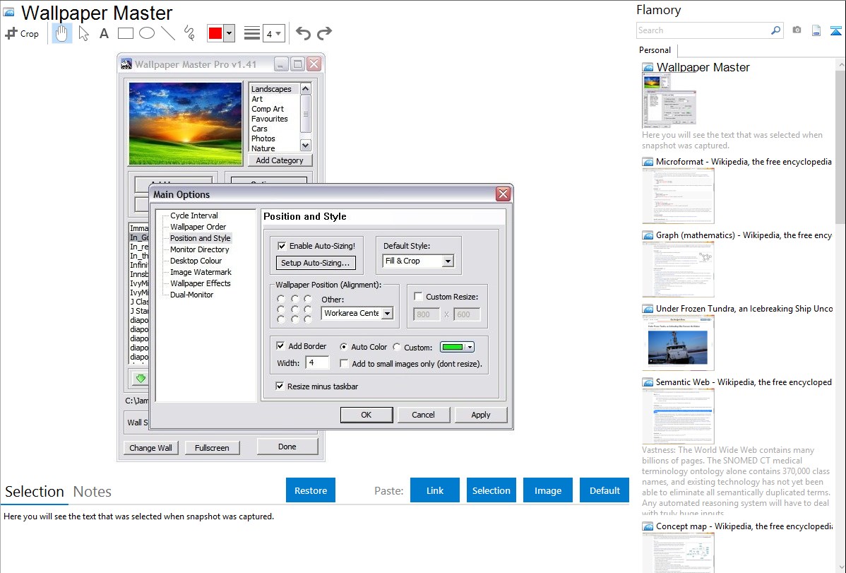 Here is how Wallpaper Master snapshot can look like. Get Flamory and try this on your computer.