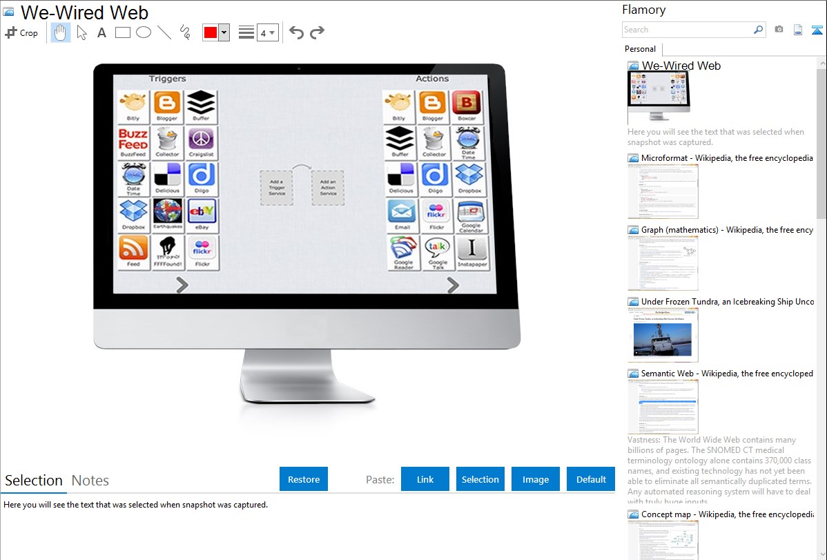 Flamory helps you capture and store screenshots from We-Wired Web by pressing a single hotkey. It will be saved to a history, so you can continue doing your tasks without interruptions. Later, you can edit the screenshot: crop, resize, add labels and highlights. After that, you can paste the screenshot into any other document or e-mail message.