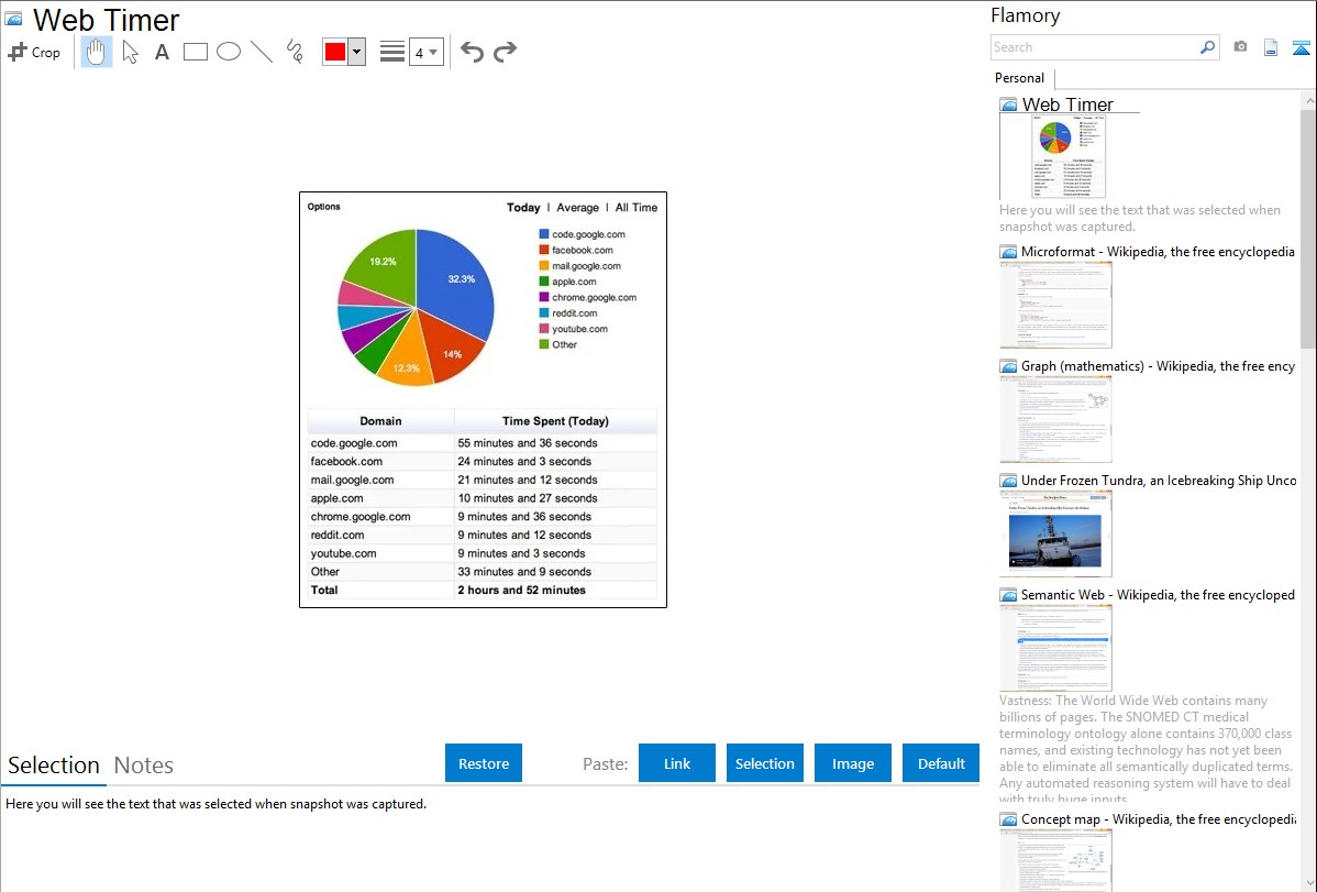 Flamory helps you capture and store screenshots from Web Timer by pressing a single hotkey. It will be saved to a history, so you can continue doing your tasks without interruptions. Later, you can edit the screenshot: crop, resize, add labels and highlights. After that, you can paste the screenshot into any other document or e-mail message.