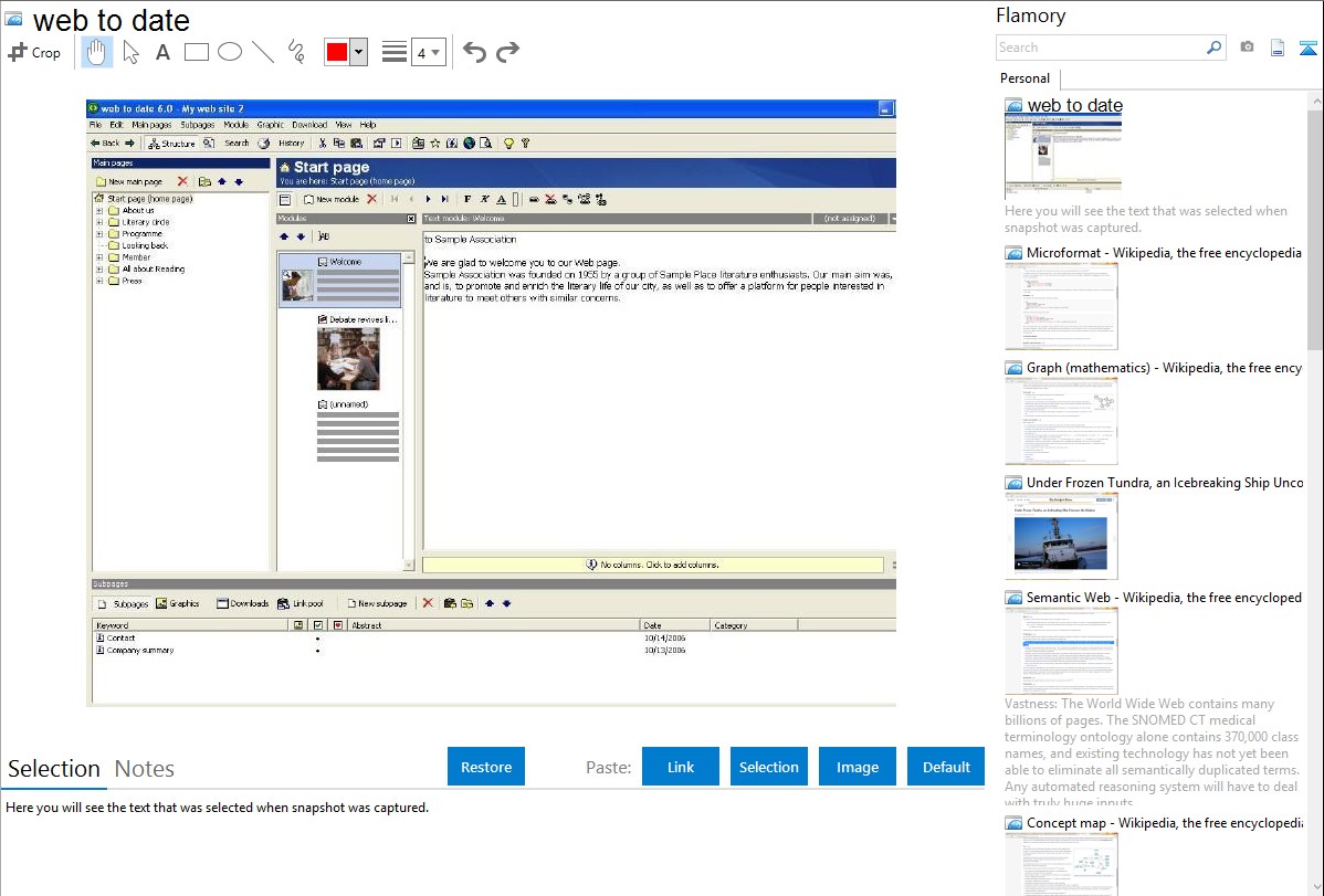 Flamory helps you capture and store screenshots from web to date by pressing a single hotkey. It will be saved to a history, so you can continue doing your tasks without interruptions. Later, you can edit the screenshot: crop, resize, add labels and highlights. After that, you can paste the screenshot into any other document or e-mail message.