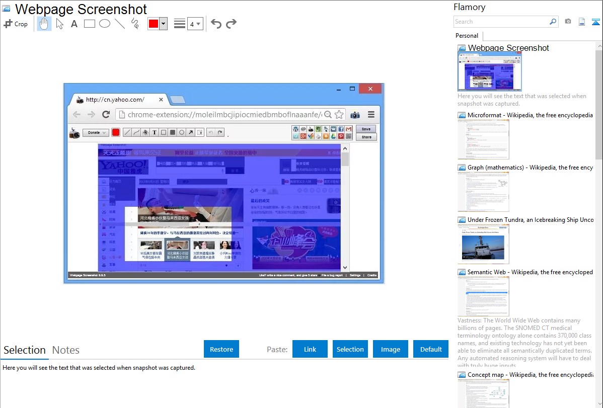 Flamory helps you capture and store screenshots from Webpage Screenshot by pressing a single hotkey. It will be saved to a history, so you can continue doing your tasks without interruptions. Later, you can edit the screenshot: crop, resize, add labels and highlights. After that, you can paste the screenshot into any other document or e-mail message.