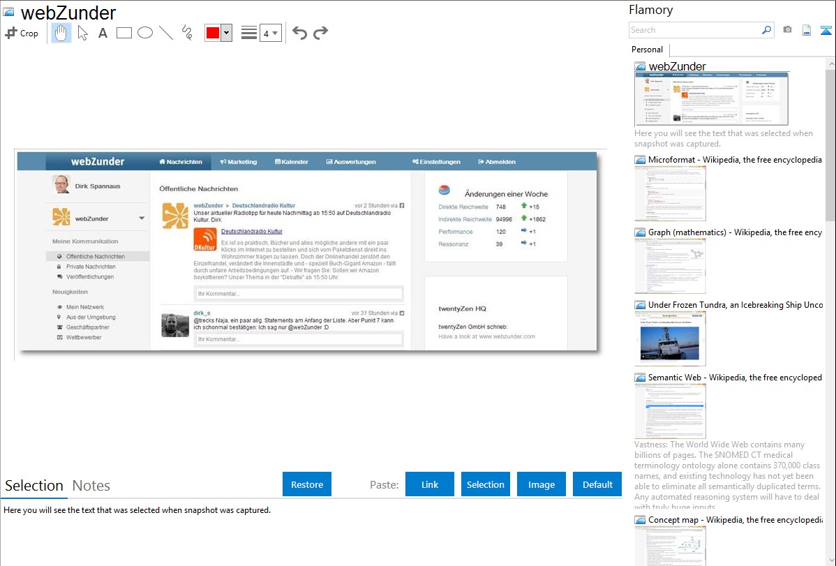 Flamory helps you capture and store screenshots from webZunder by pressing a single hotkey. It will be saved to a history, so you can continue doing your tasks without interruptions. Later, you can edit the screenshot: crop, resize, add labels and highlights. After that, you can paste the screenshot into any other document or e-mail message.