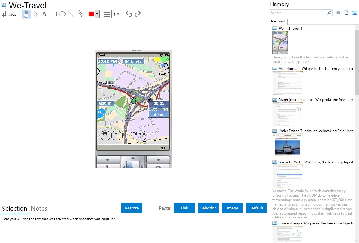 Flamory helps you capture and store screenshots from We-Travel by pressing a single hotkey. It will be saved to a history, so you can continue doing your tasks without interruptions. Later, you can edit the screenshot: crop, resize, add labels and highlights. After that, you can paste the screenshot into any other document or e-mail message.