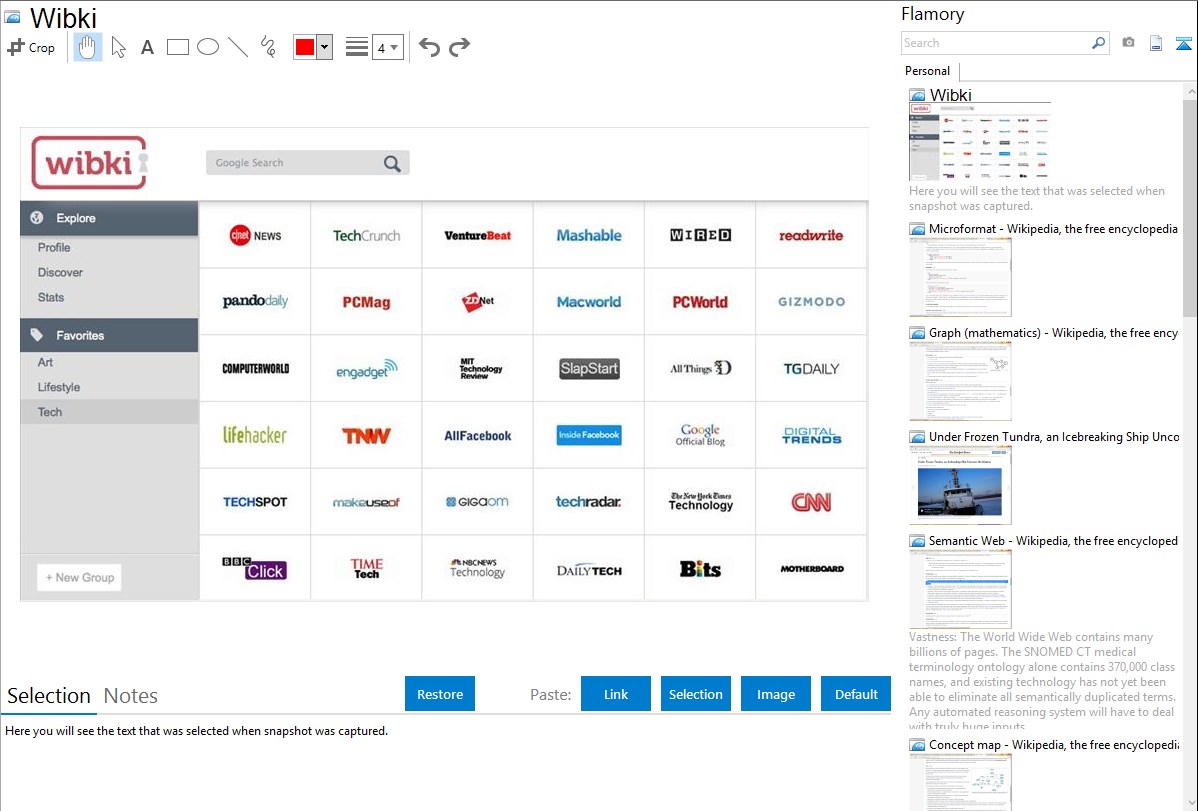 Wibki - Flamory bookmarks and screenshots
