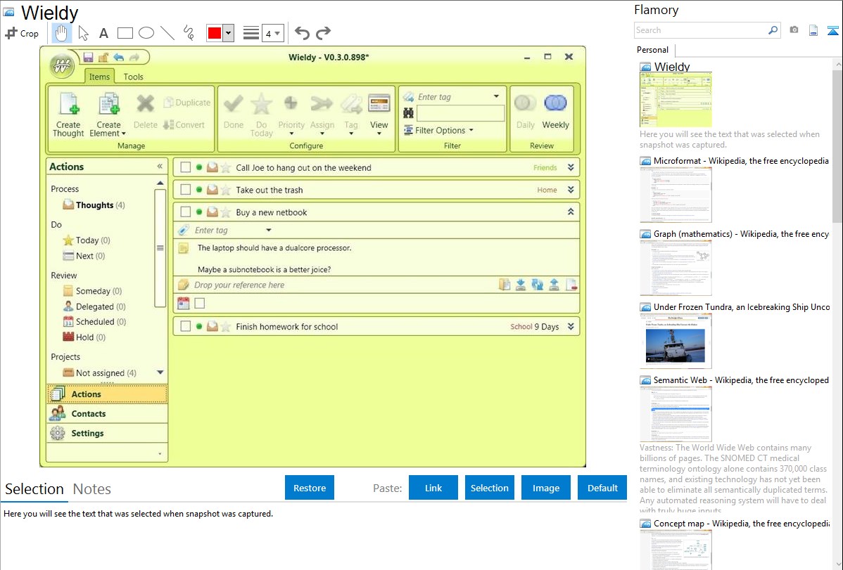 Flamory helps you capture and store screenshots from Wieldy by pressing a single hotkey. It will be saved to a history, so you can continue doing your tasks without interruptions. Later, you can edit the screenshot: crop, resize, add labels and highlights. After that, you can paste the screenshot into any other document or e-mail message.