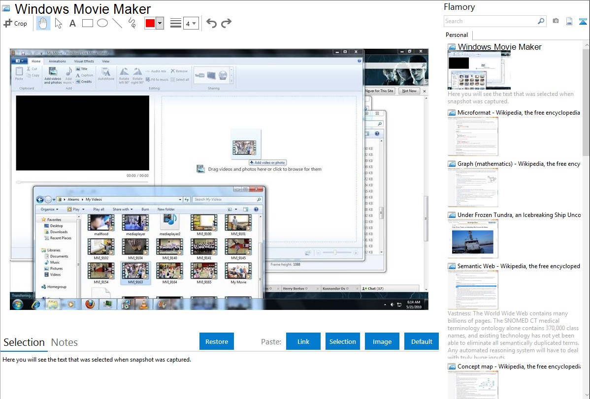 Here is how Windows Movie Maker snapshot can look like. Get Flamory and try this on your computer.