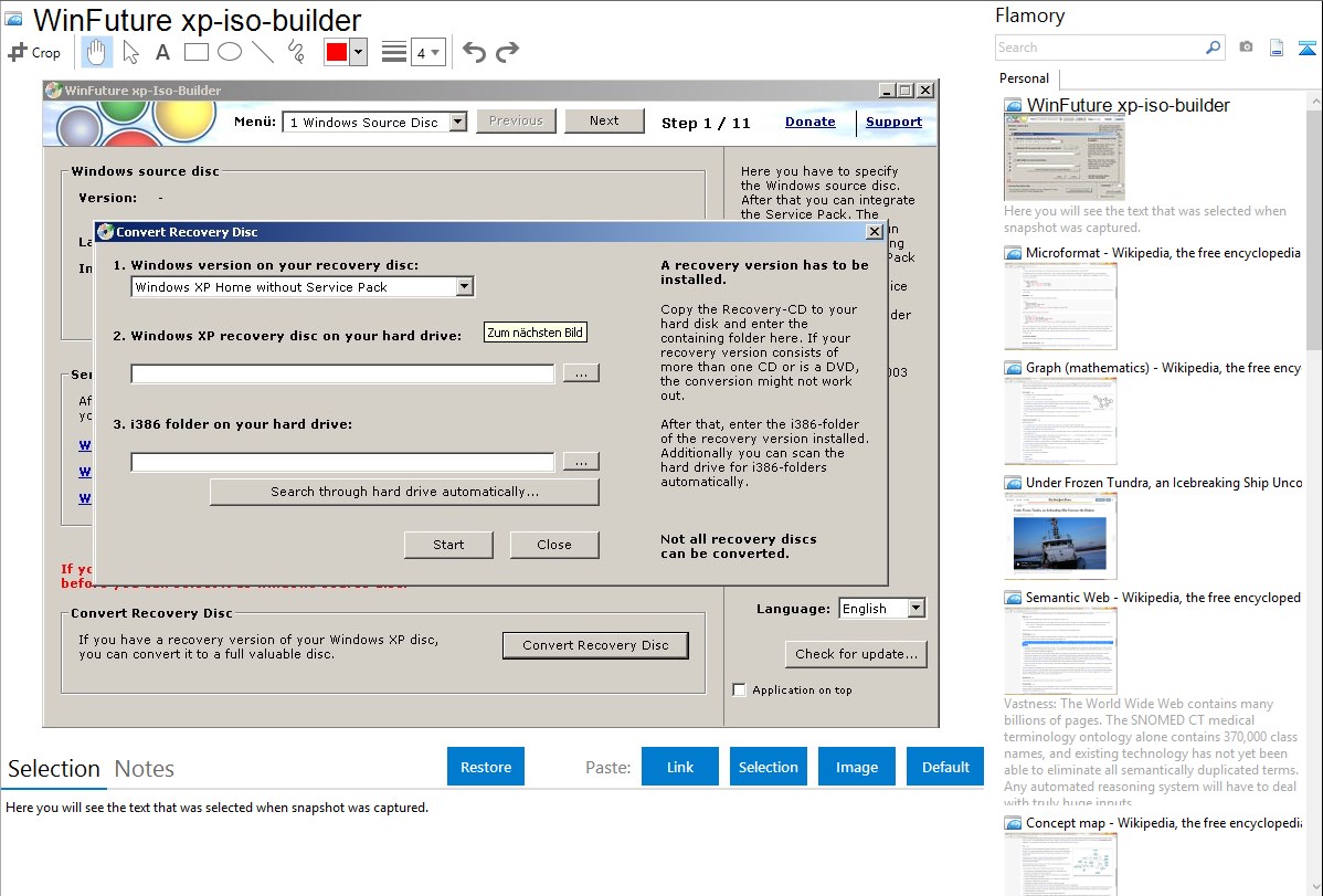 Flamory helps you capture and store screenshots from WinFuture xp-iso-builder by pressing a single hotkey. It will be saved to a history, so you can continue doing your tasks without interruptions. Later, you can edit the screenshot: crop, resize, add labels and highlights. After that, you can paste the screenshot into any other document or e-mail message.