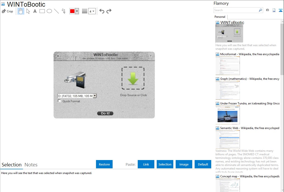 Flamory helps you capture and store screenshots from WINToBootic by pressing a single hotkey. It will be saved to a history, so you can continue doing your tasks without interruptions. Later, you can edit the screenshot: crop, resize, add labels and highlights. After that, you can paste the screenshot into any other document or e-mail message.