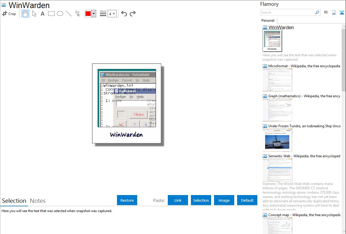 Flamory helps you capture and store screenshots from WinWarden by pressing a single hotkey. It will be saved to a history, so you can continue doing your tasks without interruptions. Later, you can edit the screenshot: crop, resize, add labels and highlights. After that, you can paste the screenshot into any other document or e-mail message.