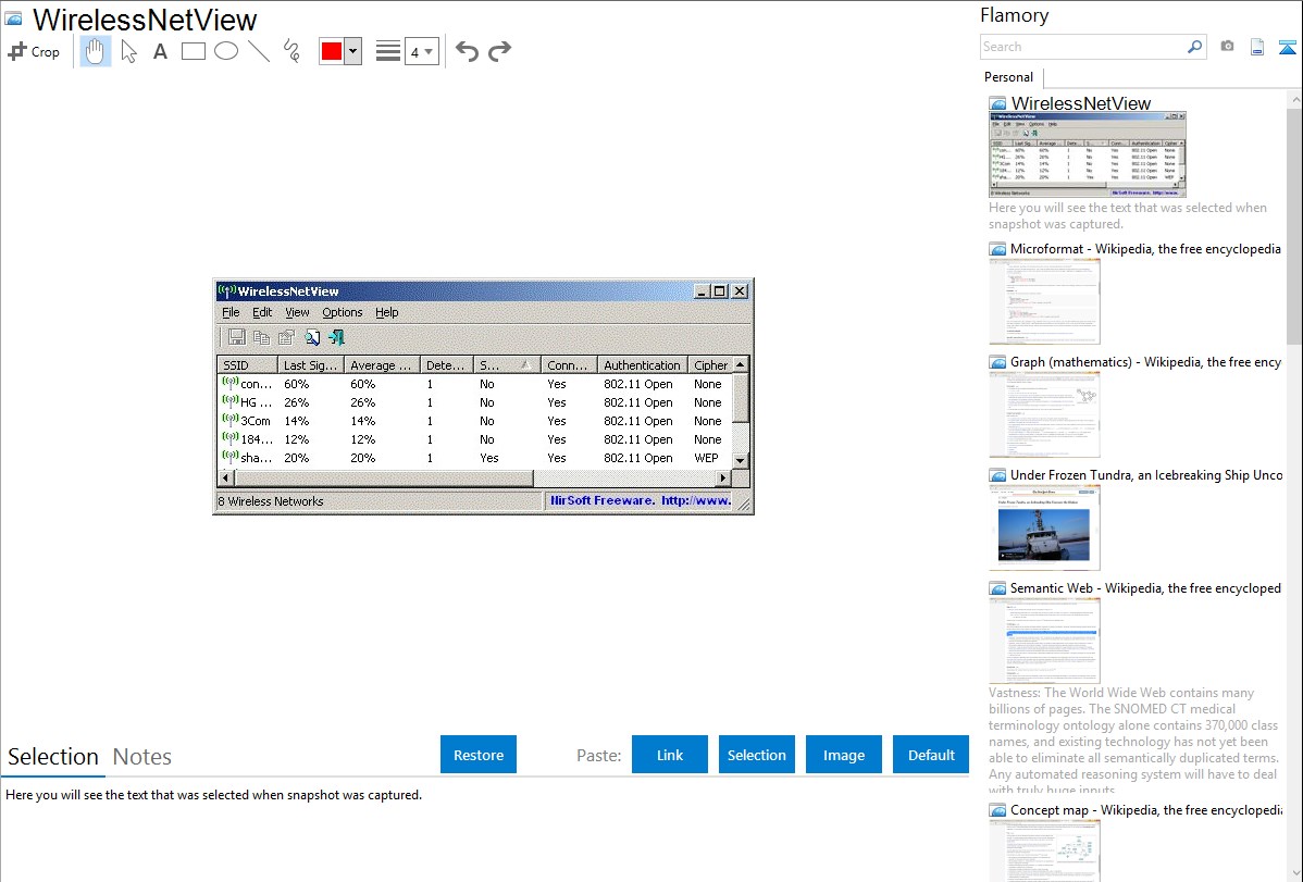Flamory helps you capture and store screenshots from WirelessNetView by pressing a single hotkey. It will be saved to a history, so you can continue doing your tasks without interruptions. Later, you can edit the screenshot: crop, resize, add labels and highlights. After that, you can paste the screenshot into any other document or e-mail message.