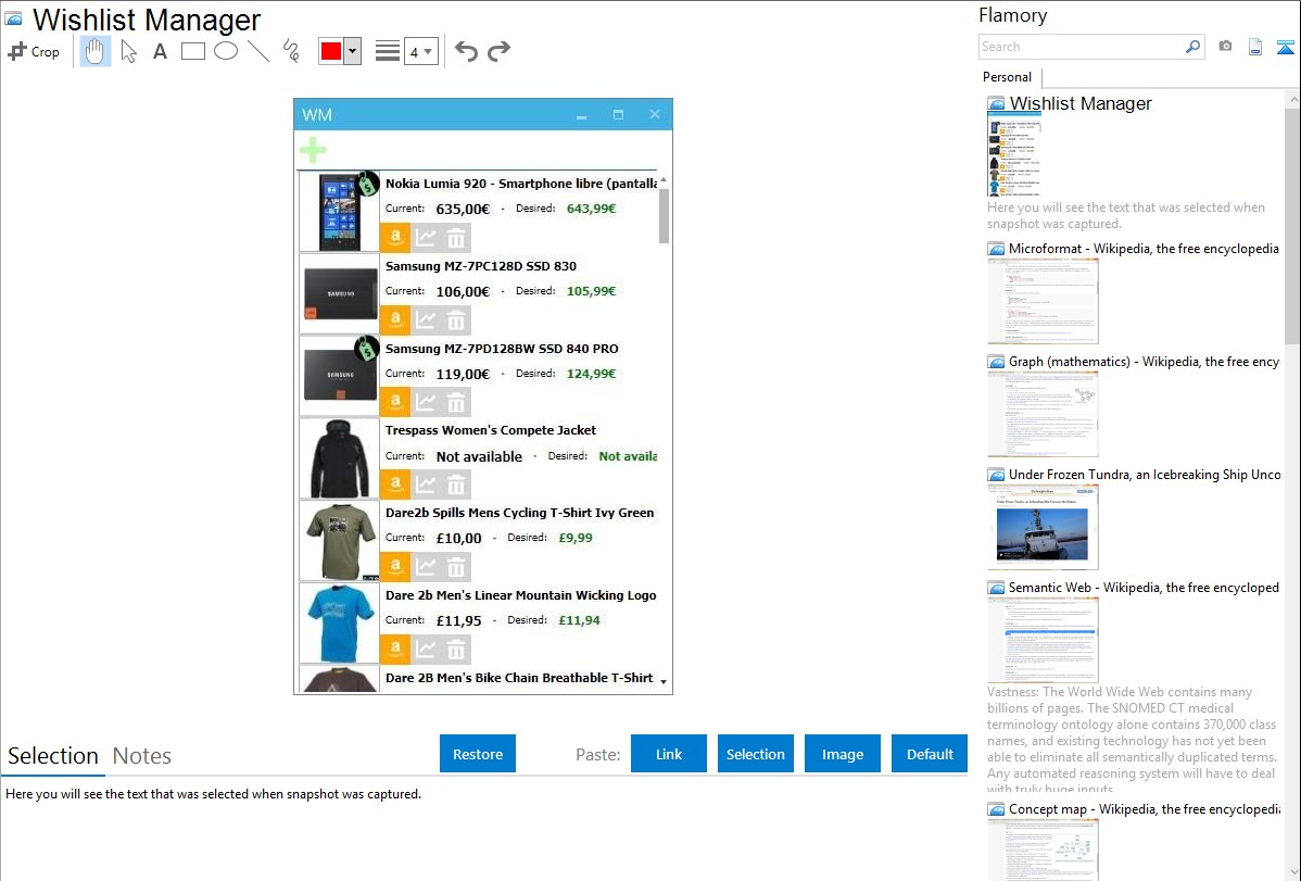 Flamory helps you capture and store screenshots from Wishlist Manager by pressing a single hotkey. It will be saved to a history, so you can continue doing your tasks without interruptions. Later, you can edit the screenshot: crop, resize, add labels and highlights. After that, you can paste the screenshot into any other document or e-mail message.