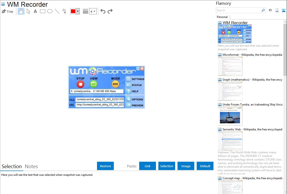 Flamory helps you capture and store screenshots from WM Recorder by pressing a single hotkey. It will be saved to a history, so you can continue doing your tasks without interruptions. Later, you can edit the screenshot: crop, resize, add labels and highlights. After that, you can paste the screenshot into any other document or e-mail message.